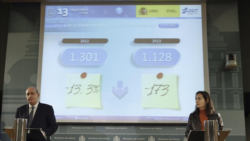 La cifra representa un 13% menos de muertos en las primeras 24 horas después del accidente que en 2012, es decir 173 víctimas mortales menos, según han informado en rueda de prensa el ministro del Interior, Jorge Fernández Díaz y la directora general de Tráfico, María Seguí.